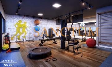 Condominio com lazer completo com piscina adulto e infantil com deck molhado, brinquedoteca, fitness, salão de jogos, cinema, espaço gourmet, salão de festas, playground, quadra poliesportiva, 2 quiosques com churrasqueiras, espaço coworking, bicicletário e portaria 24 horas.